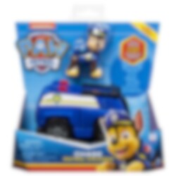Hauska setti, jossa on Paw Patrol -sarjasta tutut Chase ja pyörillä varustettu poliisiauto. Loistava lahja Paw Patrolista ja Chasesta pitävälle. Poliisiauto on kooltaan noin 15 x 8 cm ja Chasen noin 6 cm.