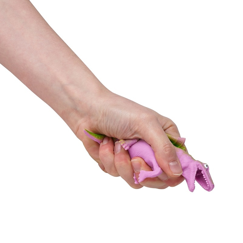Superjoustava dinosaurus, joka on täytetty muotoiltavalla hiekalla. Sen ansiosta dino pysyy juuri siinä asennossa, johon sen muotoilet. Voidaan käyttää myös stressileluna.