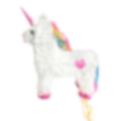 Kaunis yksisarvisen muotoinen pinata. Pinata on hauska yllätys kaikkiin juhliin ja se voidaan täyttää sekä makeisilla että pienillä leluilla. Pinatan mitat ovat noin 39 x 13 x 55 cm.