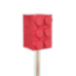 Hieno piñata, joka on muotoiltu kuin punainen rakennuspalikka – hauska lisä juhliin! Piñatasta roikkuu naruja, joista lapset voivat vetää, ja yksi naruista avaa piñatan, jolloin sisältö putoaa ulos.