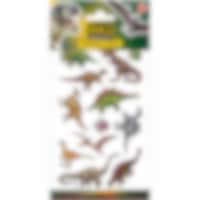 6 kpl tatuointia joissa hienoja piirrettyjä motiiveja dinosauruksista. Yksi arkki sisältää 6 kpl tatuointia, jotka helposti voi irrottaa toisistaan rei'itettyjen rivien avulla. Jokainen tatuointi on noin 3,5 cm kokoinen. Poista kirkas kalvo tatuoinnin päältä ja aseta tatuointi ihoa vasten. Kostuta tatuoinnin takana oleva valkoinen paperi vedellä ja odota noin 30 sekuntia. Irrota paperi varovasti, jotta kuva siirtyy iholle. Tatuointi kuluu pois muutamassa päivässä. Voidaan poistaa iholta vauvaöljyllä.