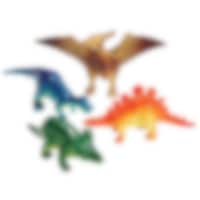 Erikokoisia ja erimuotoisia dinosauruksia joita voi esimerkiksi laittaa lasten kaverilahjapusseihin yllätykseksi. Dinosauruksia voi myös laittaa katettuun juhlapöytään koristeiksi Dino-juhlia varten. Dinosaurukset ovat tehty muovista ja ovat erivärisiä. Myydään yksittäisenä ja lajittelemattomina.
