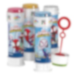 Saippuakuplat, joideb pullossa on värikkäitä kuvioita Spidey and His Amazing Friends -sarjasta. Saippuakuplat ovat suosittuja lahjoja lastenjuhlissa ja niitä on hauska puhaltaa yhdessä. Hinta on per kpl ja pullo sisältää 60 ml nestettä.