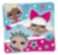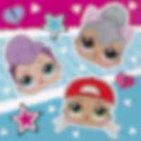 16 kpl serviettejä LOL Surprise kuvio. Servietit ovat kaksikerroksisia, noin 30 x 30 cm.