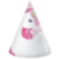 6 kpl vaaleanpunaisia juhlahattuja söpöillä yksisarviskuvioilla. Hauska lisä juhliin yksisarvis-teemalla. Hatut ovat noin 19 cm korkeita ja ne pysyvät paikoillaan kuminauhan avulla.