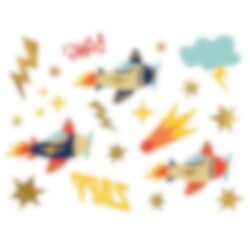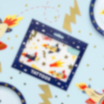 11 kpl. kertakäyttöisiä tatuointeja eri kokoluokissa, kaikki hauskoilla lentokoneteeman kuvilla. Jos suunnittelet lastenjuhlaa lentokone- tai ajoneuvoteemalla, nämä ovat hauskoja yllätyksiä ystäville juhlapussiin tai -rasiaan.