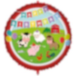 Anna juhlille maalaismainen tunnelma tällä pyöreällä folioilmapallolla, jossa on suloisia maatilan eläimiä! Ihana koriste, joka sopii täydellisesti pienille eläinten ystäville ja maatilateemaan.