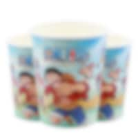 8 kpl. pahvimukeja hienolla One Piece -kuviolla. Mukit ovat noin 9 cm korkeita ja niiden tilavuus on noin 250 ml.