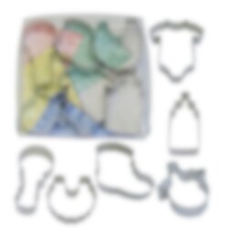 6 kpl vauvateemaisia keksimuotteja. Leivo upeat keksit Babyshower juhliin tarjottavaksi näiden muottien avulla. Muotit on valmistettu teräksestä ja eivät kestä konepesua. Muotit ovat kooltaan 7,6 - 10,3 cm välillä.