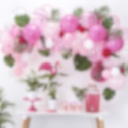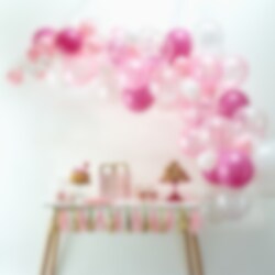 Kaunis roosan ja valkoisen värinen Ilmapallokaari, jonka voit itse rakentaa. Upea koriste, joka sopii monen laisiin juhliin ja häihin. Pakkaus sisältää 70 kpl ilmapalloja ja englanninkieliset ohjeet ilmapallokaaren rakentamiseen. Ilmapallokaari on rakennettuna noin 4 metrin kokoinen.