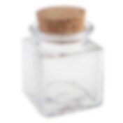 Neliön muotoinen lasipullo korkilla 4 x 6 cm