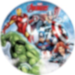 8 pahvilautasta hienoilla Avengers-hahmoilla. Täydelliset Avengers-juhlien pöydän kattaukseen. Lautasten halkaisija on noin 23 cm ja ne ovat FSC-sertifioituja.