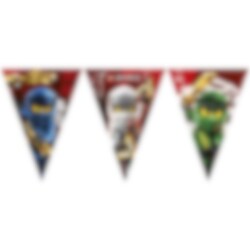 Värikäs lippuviiri kauniissa väreissä söpöillä LEGO Ninjago. Aseta viiri juhlahuoneen pöydän yläpuolelle LEGO Ninjago -teemaisiin juhliin. Lippuviiri on valmistettu paperista, ja sen pituus on noin 2,3 metriä.