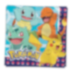 16 kpl hienoja Pokemon-servettejä, joissa seikkailevat Ashin Pikachu ja Rakettiryhmän Meowth. Servetit sopivat hyvin synttäripöydän kattaukseen. 2 kerrosta, 33 x 33 cm.