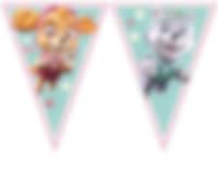 Hieno muovinen lippuköynnös, jonka molemmilla puolilla tv-sarja Ryhmä Haun Kaja ja Halti kuva-aihe. Kiva koriste Ryhmä Hau-juhliin. Lippuköynnös on 2,3 metriä pitkä.
