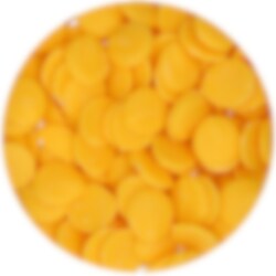 Vaaleanoransseja ja mangonmakuisia Deco Melts -nappeja, joita voidaan käyttää kakun koristeluun, kakkutikkareihin sekä lukuisiin muihin juhlaleivonnaisiin. Napit sulavat nopeasti vesihauteessa tai mikrossa. Pakkauksen koko on 250 grammaa.