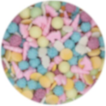 Anna leivonnaisillesi taianomainen kiilto tällä ihanalla yksisarvissekoituksella! Ihana yhdistelmä pastellivärejä, hohtavia helmiä ja söpöjä yksisarvisfiguureja luo satumaisen koristelun kuppikakuille, kakuille ja muille juhlaleivonnaisille. Täydellinen yksisarvisteemaisiin ja mielikuvituksellisiin juhliin.