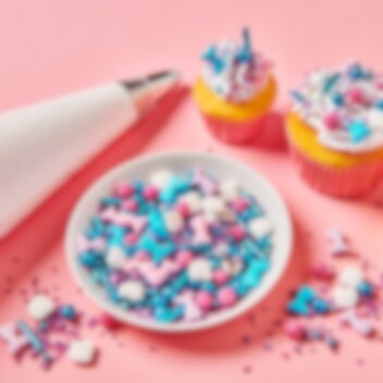 Tutki meren salaisuuksia tämän kimaltelevan merenneitoströsselin avulla! Kaunis sekoitus turkooseja, vaaleanpunaisia ja violetteja koristeita merenneidon pyrstöillä, simpukoilla ja hohtavilla helmillä. Antaa leivonnaisillesi satumaisen tunnelman. Täydellinen merenneitoteemaan, juhliin ja mielikuvituksellisiin leivonnaisiin.