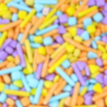 Ainesosat: dekstroosi, maissitärkkelys, paakkuuntumisenestoaine: E470b, väri: E162, E160a, E160c, E100, E133, pintakäsittelyaine: E904, E903.