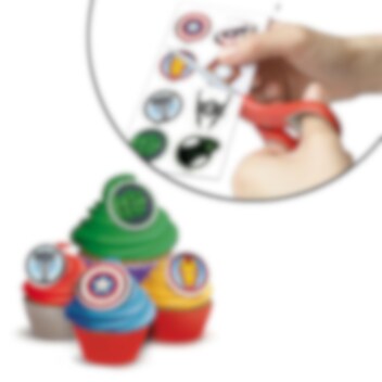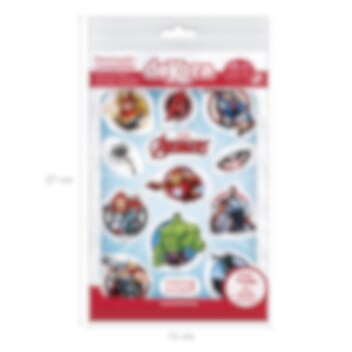 Pakkaus sisältää 13 sokeritonta kakkukoristetta kivoilla Marvel Avengers aiheilla. Koristele kakkusi tai muffinssisi näillä, kun on juhlien aika. Löydät myös ainesosaluettelon alta:
