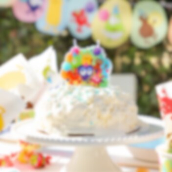 Babblarna-teeman kakkukynttilä. Kynttilä on noin 9 x 7 cm kokoinen.