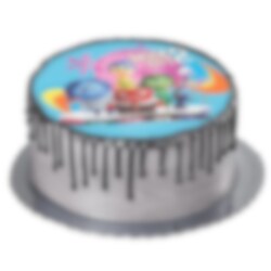 Värikäs kakkukuva vohvelista synttärikakkuun. Kuva on elokuvasta Inside Out – mielen sopukoissa 2! Ilo, Suru, Pelko, Kiukku ja Inho tekevät jokaisesta kakkupalasta todellisen tunteiden myrskyn – täydellinen kaikille pienille ja isoille Pixarin faneille.