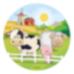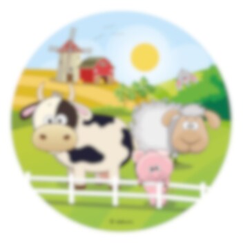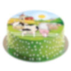 maatilateemaisille syntymäpäiville ja sijoita vohveli kakun päälle. Kuvan halkaisija on 20 cm ja se on helppo käyttää. Kakkukuva vohvelista on gluteeniton ja laktoositon eikä sisällä lisättyä sokeria.