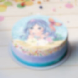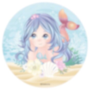 Vohvelikakkukuva, jossa on kaunis merenneito simpukoiden keskellä. Leivo lasten juhliin oma merenneitoteemainen kakku ja aseta vohvelikuva sen päälle. Kuva on halkaisijaltaan 20 cm, ja sitä on helppo käyttää. Kakkukuva on gluteeniton ja laktoositon, eikä siihen ole lisätty sokeria.