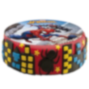 Upea kakkukuva hyvänmakuisella sokerittomasta massasta supersankari Spidermanin kuvalla. Kakkukuva on valmis laitettavaksi kakun päälle heti ja kuva on terävämpi kuin tavallinen vohvelipohjainen kakkukuva. Kivan halkaisija on noin 15,5 cm.