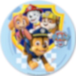 Värikäs kakkukuva sokeriton sokerimassasta Nickelodeonin TV-sarjan Paw Patrol -hahmojen kuvilla. Kakkukuva on valmis asetettavaksi suoraan kakkuun ja sillä on terävämpi ja yksityiskohtaisempi painatus kuin vohvelikuvalla. Lisäksi kuvalla on hyvä vaniljan maku. Kuva on halkaisijaltaan noin 20 cm.
