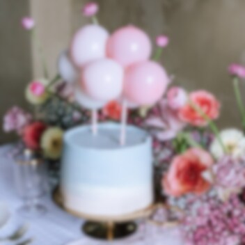 Tämä DIY-setti on kaunis koriste sekä hauska tapa personoida kakkua ja tehdä siitä mieleenpainuva kaikille vieraille. Paketissa on tikkuja ja pieniä ilmapalloja, jotka voit helposti koota itse.