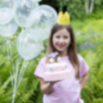6 kpl ylellisiä läpinäkyviä ilmapalloja, jotka on täytetty pastellivärisillä paperikonfeteilla. Ilmapalloissa on suloisia kuvioita, ja ne kuuluvat Crazy Cake -mallistoon, jossa on kuppikakkuja, kakkuja ja makeisia. Täydellinen luomaan hauska ja kesäinen tunnelma. Ne ovat halkaisijaltaan noin 28 cm täyteen puhallettuna. Ilmapallopumpun käyttö on suositeltavaa helpon täyttämisen varmistamiseksi.