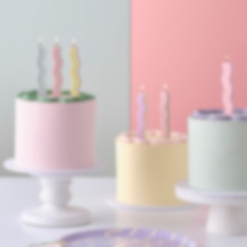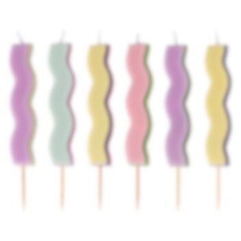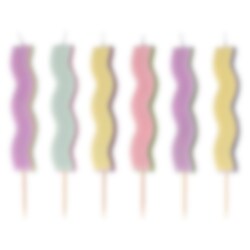 6 kpl aaltomaisia ja trendikkäitä synttärikakkukynttilöitä – täydellisiä kaikkiin juhliin. Yhdistä muihin pastellivärisiin koristeisiin ja kattausvälineisiin. Kakkukynttilät ovat 13 cm korkeita.