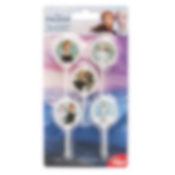 5-pakkaus kakkukynttilöitä, joita koristaa Frozen 2 -elokuvasta tutut Anna, Elsa, Kristoff, Sven ja Olaf. Koristele Frozen-teemaisten juhlien kakku tai leivonnaiset näillä kynttilöillä.
