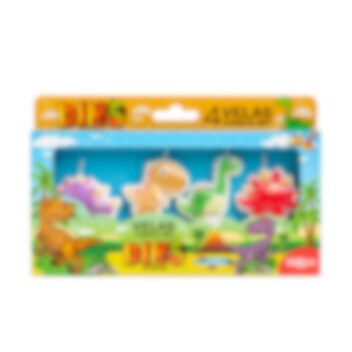 ✔️ Sisältää 4 kakkukynttilää eri dinosaurusaiheilla