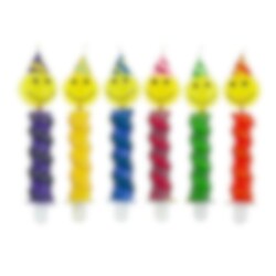 Tee jokaisesta juhlasta iloinen tapahtuma näiden Party Smiley kakkukynttilöiden avulla! Nämä 12 cm korkeat kynttilät tulevat kuuden setissä ja ne levittävät iloa ja hymyä pöydän ympärille. Täydellinen lastenjuhliin tai lisäämään leikkisän silauksen aikuisten synttäreille.
