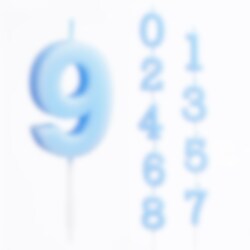 Lisää kakkuun pehmeä ja juhlava yksityiskohta tällä pastellinsinisellä numerokynttilällä. Vaalea pastellisävy luo leikkisän ja harmonisen ilmeen, joka sopii täydellisesti lastenjuhliin ja syntymäpäiville.