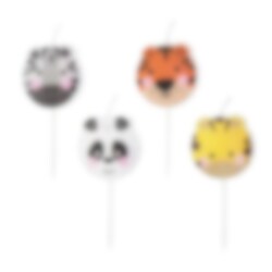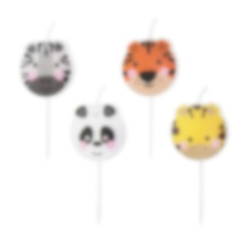 4 kpl. kakkukynttilöitä suloisilla safarieläimillä – anna kakulle hauska silaus! Kynttilät ovat 5 cm korkeita ja jokainen eläin on 3 cm halkaisijaltaan. Erinomainen valinta safariteemajuhliin.