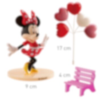 Nätti koristelusetti joka sisältää Minni Hiiren sekä 10 kpl pastellinväristä kakkukynttilää ja pidikettä. Aseta kynttilät ja Minni Hiiri kakun päälle. Minni on noin 9 cm pitkä ja kynttilät noin 6,5 cm korkeita. Näitä koristeita ei voi syödä, ne ovat ainoastaan tarkoitettu koristeiksi.
