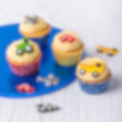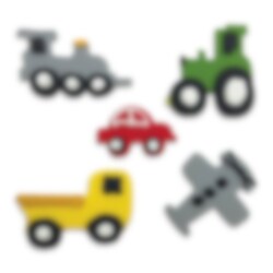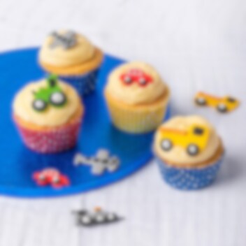 5 kpl sokerikoristeita jotka esittävät värikkäitä ajoneuvoja. Koristele muffinssit tai kakku näillä hienoilla koristeilla, jotka sopivat erityisen hyvin autoaiheisiin juhliin.