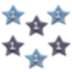 6 kpl sokerikoristeita, jotka esittävät tähtiä sinisen ja hopean värissä. Koristele kakku näillä, kun on juhlan tai Babyshowerin aika.