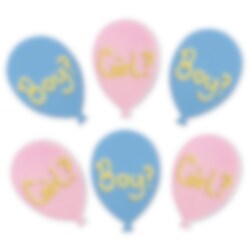 6 kpl sokerikoristeita ihanissa pastelliväreissä texteillä "Boy?" ja "Girl?" kullanvärisinä. Koristele kakku tai leivokset Gender reveal juhliin.