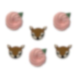 6 sokerikoristetta, joissa on peuran kasvot ja vaaleanpunaisia kukkia Deer little one -teemalla. Koristele kakku näillä koristeilla Deer little one -teemaisiin 1-vuotisjuliin. Ainekset: Sokerimassa (sokeri, glukoosisiirappi, palmuöljy, makuaine, stabilointiaine (E413), emulgointiaine (E471), kosteutusaine (E422), säilöntäaine (E202), väriaineet (E122, E150)), sokeri, munanvalkuaiset, väriaineet17 ( (E17, E2, E555).