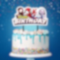 Cake Topper pahvista. Siinä on teksti "Hyvää syntymäpäivää" ja monia hauskoja kuvioita Spidey and His Amazing Friends -sarjasta! Korkeus noin 13 cm.