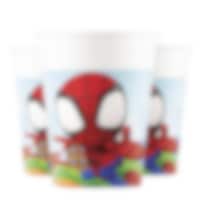 8 kpl mukeja Spidey And His Amazing Friends -kuviolla. Mukit ovat 9 cm korkeita ja niiden tilavuus 200 ml. Kupit on valmistettu FSC-merkitystä pahvista.