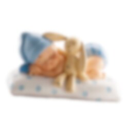 Suloinen kakkukoriste esittää nukkuvaa vauvaa nallekarhun kanssa. Koristele kakku babyshowereita varten.