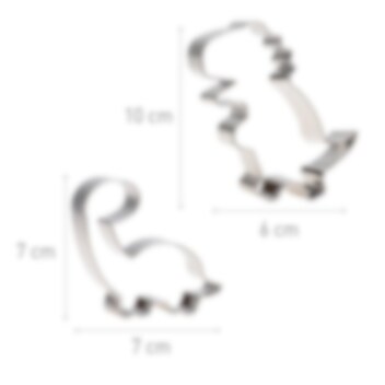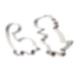 Näillä suloisilla dinosauruksen muotoisilla kakkumuoteilla luot helposti hauskoja pikkuleivonnaisia, jotka sopivat täydellisesti lasten juhliin, teemajuhliin tai leivontahetkiin perheen kanssa. Valmistettu ruostumattomasta teräksestä. Setti sisältää kaksi erilaista muotoa, T-Rexin ja Brontosauruksen. Vaihtelua ja iloa keittiöön.