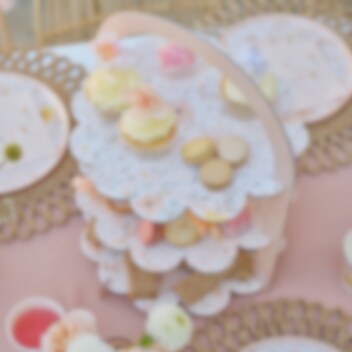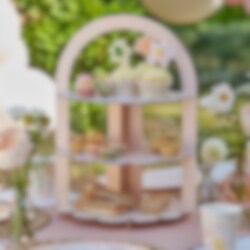 Korosta juhlapöydän parhaita tarjottavia pastellivärisellä Pink Floral -herkkutelineellämme. Tämä tyylikäs 3-kerroksinen teline on ihana keskipiste herkkujen tarjoiluun tyylikkäissä juhlissa.