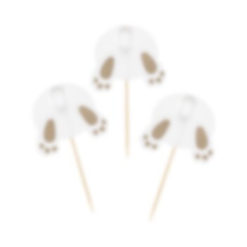 6 kpl. cake topperseja, jotka esittävät kaneja kauniilla kultaisilla yksityiskohdilla ja söpöllä pom pom -hännillä. Nämä ovat täydellisiä pääsiäiskuppikakkujen koristeiksi. Korkeus 7 cm.