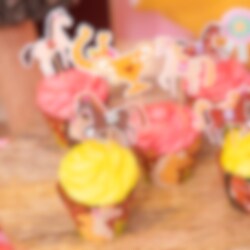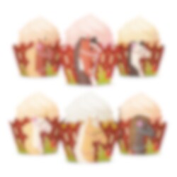 Muuta tavalliset muffinssit erityisiksi näillä suloisilla hevosteeman muffinssikoristeilla. Design esittää pienä puuaitoja värikkäillä hevosilla. Ne antavat heti leikkisän ja maalaismaisen vaikutelman – täydellinen hevosjuhliin. Kääreet ovat 7,5 cm leveitä ja noin 5 cm korkeita. Helppo asettaa valmiiksi paistettujen muffinssien ympärille.